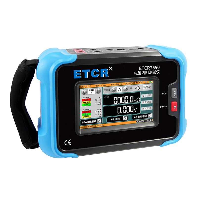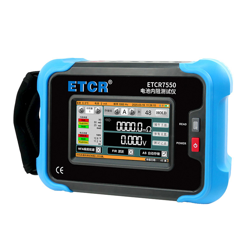 ETCR7550電池內(nèi)阻測試儀采用5寸觸摸彩屏,儀表高檔美觀,量程寬廣,分辨率高,操作便捷,攜帶方便,準(zhǔn)確、可靠、性能穩(wěn)定,抗干擾能力強(qiáng)。是電池生產(chǎn)、電池安裝、設(shè)備生產(chǎn)、設(shè)備維修等場景必不可少的儀器。
