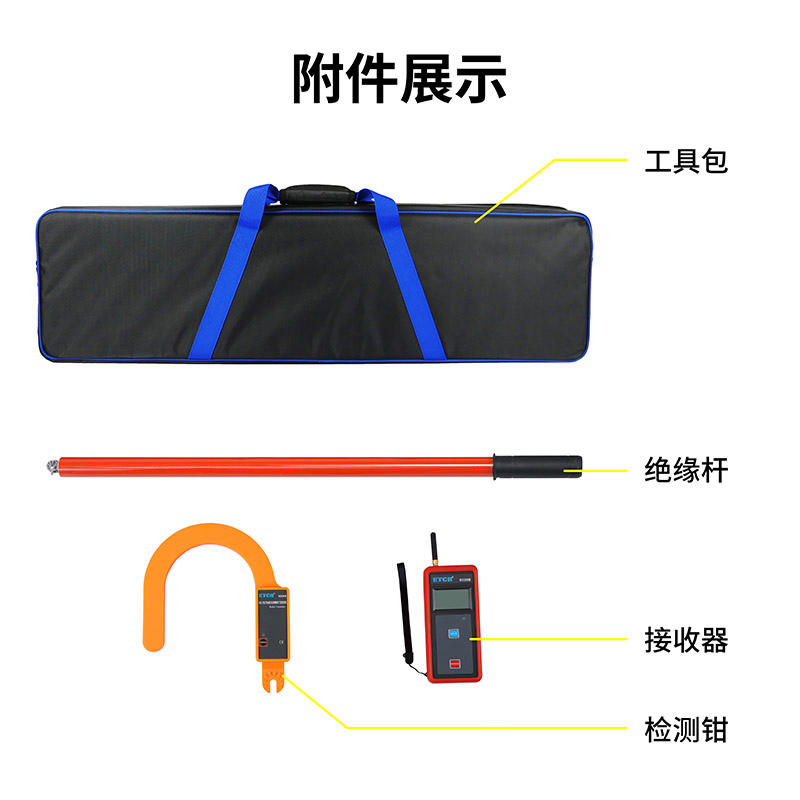 ETCR9330B大口徑叉形高低壓叉形電流表由叉形鉗頭、接收器、伸縮絕緣桿組成。在110kV以下測試需帶絕緣桿操作(可定制500kV以下測試),在600V以下可不使用絕緣桿。儀表還具有數(shù)據(jù)保持、數(shù)據(jù)存儲等功能。