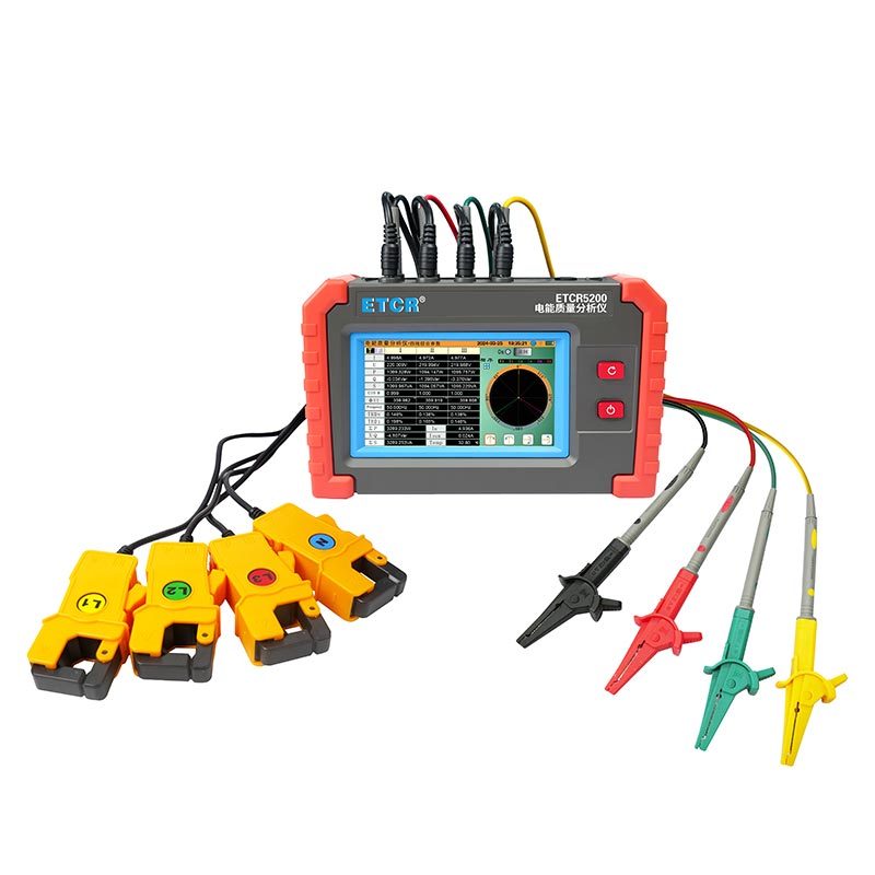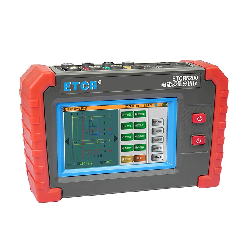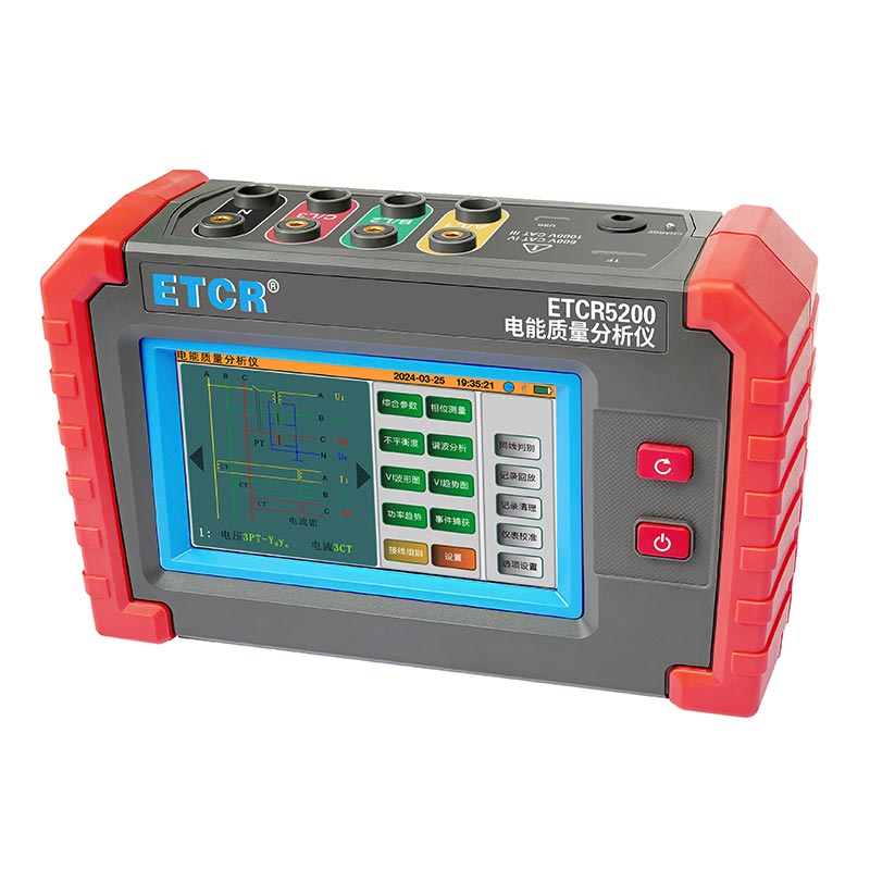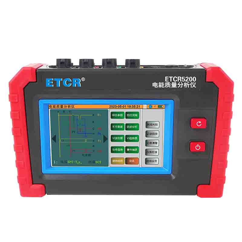 ETCR5200迷你型電能質(zhì)量分析儀又稱電力質(zhì)量分析儀、電力參數(shù)測試儀、諧波分析儀,是一款專為現(xiàn)場測試三相電能質(zhì)量的高精度綜合型測試儀器。儀表具有智能化、功能完善、人機(jī)操作簡潔、中英文雙語操作界面等特點。儀表采用5寸觸摸彩屏、體積小重量輕、攜帶方便,可選配多款電流鉗。儀表可同時測量4路電流(ABC三相及中性線電流),3路電壓、三相不平衡度、有功功率、無功功率、視在功率、諧波比、總諧波失真度等;顯示電流電壓的實時波形、相量圖;動態(tài)捕捉電壓電流瞬時變化,監(jiān)測啟動電流,監(jiān)測各電力參數(shù)并生成告警列表,長時間記錄測試數(shù)據(jù)并生成趨勢曲線圖等功能。適用于電力、石化、冶金、鐵路、工礦企業(yè)、科研院校、計量部門等。